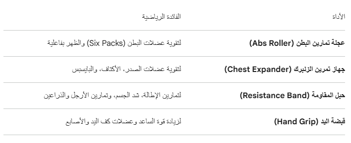 📈 مناسبة لجميع المستويات: يمكن للمبتدئين البدء بتمارين بسيطة، بينما يمكن للمحترفين زيادة شدة التمرين باستخدام الأدوات معاً لرفع قوة التحمل.