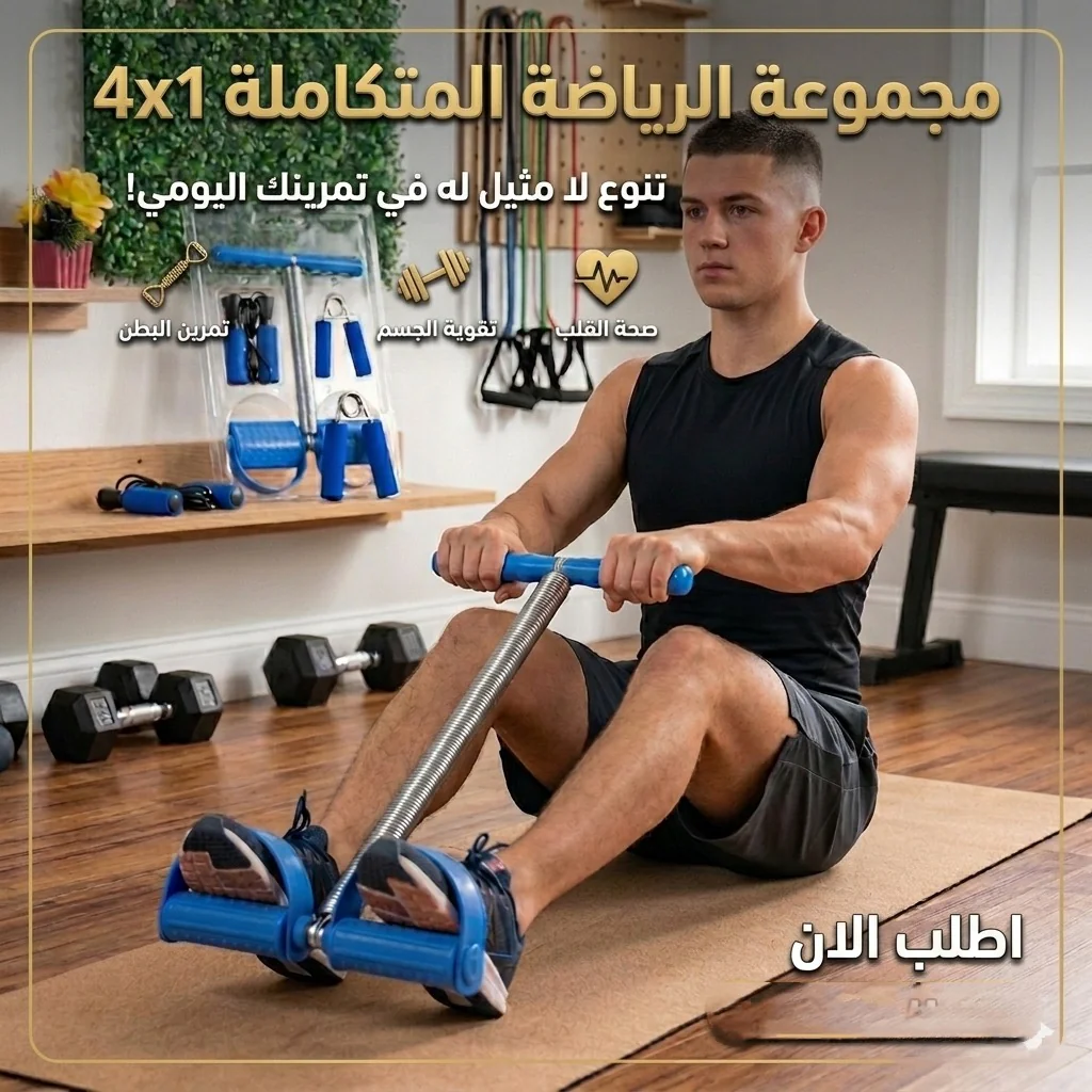 ج.مهل ترغب في الحصول على جسم رياضي ومشدود دون الحاجة لمغادرة المنزل أو دفع اشتراكات الجيم الباهظة؟ مجموعة الرياضة المتكاملة 4x1 هي رفيقك المثالي لتحقيق أهدافك البدنية. سواء كنت مبتدئاً تبحث عن اللياقة، أو محترفاً تريد الحفاظ على كتلتك العضلية، توفر لك هذه العدة كل ما تحتاجه لاستهداف عضلات الصدر، الذراعين، الظهر، والبطن بكفاءة عالية. ابدأ رحلة التغيير اليوم وتمرن في أي وقت وفي أي مكان!